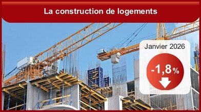 En janvier 2026, les autorisations de logements repartent à la baisse par rapport à décembre (- 6,0 % en données corrigées des variations saisonnières et des jours ouvrables), pour atteindre 30 602 unités. Cette diminution intervient après un rebond en décembre (+ 8,2 %) et deux mois de recul (- 3,8 % en novembre et - 4,1 % en octobre). Cette évolution s’inscrit dans la continuité des résultats du second semestre de 2025, en baisse par rapport au deuxième trimestre de 2025 mais plus élevé qu’en 2024. Le recul observé en janvier s’explique principalement par une diminution des logements collectifs, tandis que les logements individuels sont en très légère hausse. De février 2025 à janvier 2026, 381 486 logements ont été autorisés à la construction, soit 7,8 % de moins que la moyenne des cinq années précédentes. (INSEE)
