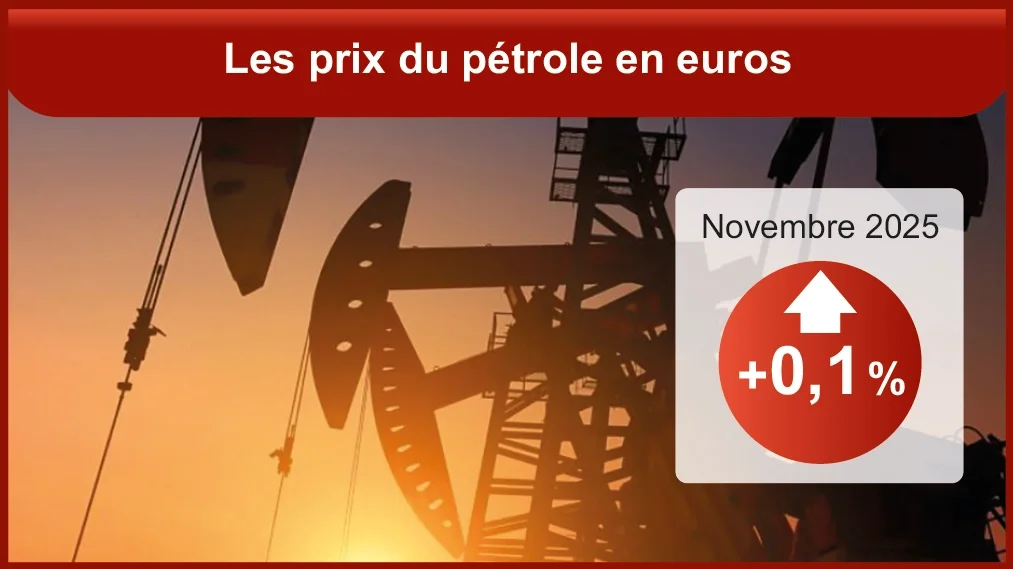 En novembre 2025, le prix du pétrole en euros est quasi stable (+0,1 % sur un mois après -4,2 % en octobre), tandis que celui du gaz baisse de nouveau (-3,6 % après -1,3 %). Les prix en euros des matières premières importées (hors énergie) continuent d’augmenter sur un mois (+1,0 % après +2,3 %), mais baissent sur un an (-3,0 %). Les prix en euros des matières premières industrielles ralentissent fortement sur le mois (+0,4 % après +5,8 %) et augmentent de 3,4 % sur un an. Les prix des matières premières stratégiques augmentent de nouveau presque tous sur le mois. Enfin, les prix en euros des matières premières alimentaires rebondissent sur un mois (+1,6 % après -0,6 %) et baissent fortement sur un an, de 8,0 %. (INSEE)