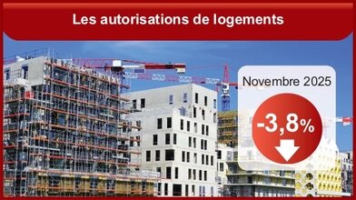 En novembre 2025, les autorisations de logements poursuivent leur baisse par rapport à octobre (- 3,8 % en données corrigées des variations saisonnières et des jours ouvrables), pour s’établir à 31 028 unités. Ce repli prolonge celui d’octobre (- 4,1 %), après le rebond de septembre (+ 6,8 %). Les autorisations marquent le pas au deuxième semestre après le regain d’activité observé en début d’année, qui succédait à deux années défavorables. La baisse de novembre concerne les logements collectifs tandis que les autorisations de logements individuels continuent de progresser.