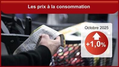 Sur un an, selon l’estimation provisoire réalisée en fin de mois, les prix à la consommation augmenteraient de 1,0 % en octobre 2025, après +1,2 % en septembre. Ce ralentissement des prix s’expliquerait par une baisse plus soutenue des prix de l’énergie, tirés par ceux du gaz et des produits pétroliers, et par le ralentissement des prix de l’alimentation. Les prix des services augmenteraient au même rythme qu’en septembre, comme ceux du tabac, et les prix des produits manufacturés diminueraient à un rythme très légèrement plus soutenu qu’au mois précédent. Sur un mois, les prix à la consommation seraient en hausse de 0,1 % en octobre 2025, après ‑1,0 % en septembre. (INSEE)