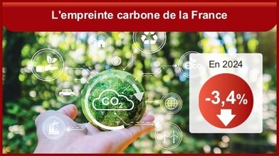 En 2024, les émissions de gaz à effet de serre des unités résidentes françaises, qui incluent certaines émissions à l’étranger pour le transport maritime et aérien notamment, s’élèvent à 404 millions de tonnes équivalent CO2, soit 5,9 tonnes par personne, alors que l’empreinte carbone de la France s’élève à 563 Mt CO2 éq, soit 8,2 tonnes par personne. Les émissions françaises se replient légèrement en 2024, de 0,9 %. La production d’électricité est moins carbonée, alors que les émissions provenant du transport maritime international augmentent nettement. L’empreinte carbone diminue quant à elle de 3,4 % (après -6,1 % en 2023), les deux tiers de cette baisse étant attribuables au recul des émissions importées (-4,6 %). (INSEE)