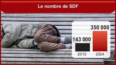 Alors que la dernière enquête « Sans domicile » publiée par l’Insee, de 2012, estimait à 143.000 le nombre de personnes privées de domicile, un chiffre en hausse de 50 % par rapport à la première enquête de 2001, la Fondation pour le logement des défavorisés, estime aujourd’hui qu’il s’élève au moins à 350.000. Ces chiffres incluent les personnes sans abri, en habitation de fortune, en hébergement collectif ou associatif et en centre d’accueil. Comme le révèle une autre étude récente de l’OCDE, la France fait partie des pays étudiés (avec l’Angleterre) où les problèmes de sans abrisme seraient les plus prévalents, avec plus de 300 personnes sans domicile recensées pour 100.000 habitants en 2023.