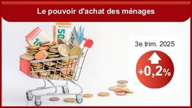 Au troisième trimestre 2025, le revenu disponible brut (RDB) des ménages en euros courants augmente de nouveau, au même rythme qu’au trimestre précédent (+0,2 % après +0,2 %). Les prestations sociales ralentissent légèrement ce trimestre (+0,6 % après +0,7 %), du fait du ralentissement des prestations maladie et de l’effet des réformes de l’assurance chômage. La masse salariale reçue par les ménages augmente à un rythme proche de celui du trimestre précédent (+0,3 % après +0,4 %). Les impôts versés par les ménages accélèrent légèrement (+1,4 % après +1,1 %). Les cotisations sociales à la charge des ménages sont de nouveau en hausse. (INSEE)