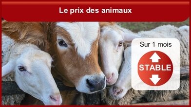 En février 2026, les prix des animaux sont stables sur un mois (après +0,4 % en janvier et +0,1 % en décembre). Ils continuent d’accélérer pour les veaux (+2,4 % après +1,5 % en janvier et +0,9 % en décembre) et ralentissent pour les gros bovins (+0,6 % après +1,2 % en janvier) et les volailles (+0,2 % après +0,8 %). Les prix des ovins sont quasi stables (-0,1 % après +2,3 %). Ceux des porcins continuent de baisser (-3,7 % après -3,6 %). Sur un an, les prix des animaux ralentissent légèrement mais restent en forte hausse en février 2026 (+14,6 % après +15,6 % en janvier et +15,8 % en décembre). La hausse des prix est encore importante pour les gros bovins (+32,0 % après +35,2 % en janvier) et les veaux (+22,0 % après +20,6 %). (INSEE)