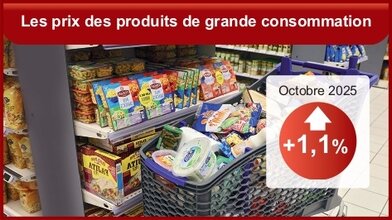 En octobre 2025, les prix des produits de grande consommation vendus dans la grande distribution, comme dans la grande distribution étendue, baissent de 0,1 % sur un mois, après ‑0,2 % en septembre. Hors grande distribution, les prix des produits de grande consommation sont stables sur un mois, comme en septembre. Toutes formes de vente confondues, les prix des produits de grande consommation sont quasi stables sur un mois (‑0,1 % comme en septembre). Comparés à ceux du même mois de l’année précédente, les prix des produits de grande consommation vendus dans la grande distribution ralentissent légèrement : +1,1 %, après +1,2 % en septembre. (INSEE)