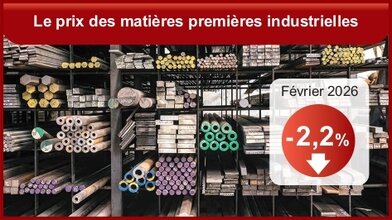 En février 2026, les prix en euros des matières premières industrielles se replient sur un mois (-2,2 % après +9,3 % en janvier). Sur un an, ils sont en nette hausse (+8,8 %). Les prix des matières minérales se replient (-2,4 % après +9,9 %). Les prix des métaux non ferreux se replient (-2,4 % après +10,0 %) ainsi que ceux des métaux ferreux (-5,2 % après +1,6 %). Ceux des métaux précieux sont quasi stables (-0,1 % après +17,8 %) : le prix de l’or augmente, tandis que ceux des autres métaux précieux (dont l’argent) se replient. Sur un an, les prix des matières minérales augmentent de 12,8 %, toujours tirés par la flambée des prix des métaux précieux (+66,5 %). (INSEE)