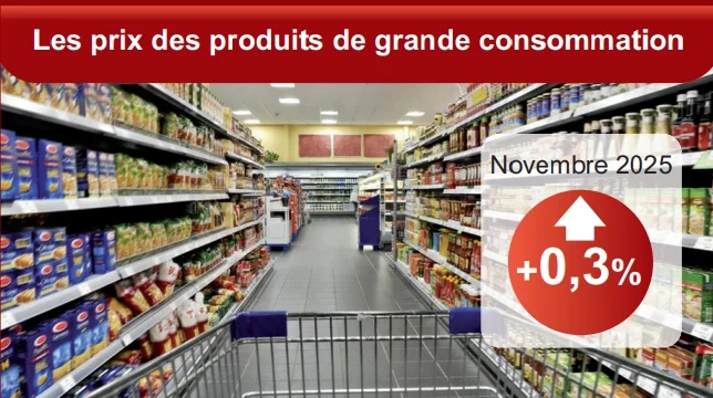 En novembre 2025, les prix des produits de grande consommation vendus dans la grande distribution, comme dans la grande distribution étendue, augmentent de 0,3 % sur un mois, après -0,1 % en octobre.