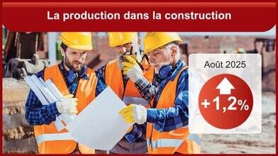 En août 2025, la production dans la construction accélère (+1,2 % après +0,6 % en juillet). Elle augmente dans les travaux de construction spécialisés (+1,4 % après +0,6 %) et la construction de bâtiments (+3,7 % après +1,4 %). À l’inverse, elle baisse de nouveau dans le génie civil (-1,3 % après -0,2 %). La production dans la construction des trois derniers mois (juin à août 2025) est inférieure de 2,8 % à celle des trois mêmes mois un an plus tôt. L’évolution de l’indice manufacturier entre juin et juillet 2025 est nettement révisée à la hausse, à -0,5 % au lieu de -1,7 % (après arrondi). (INSEE)