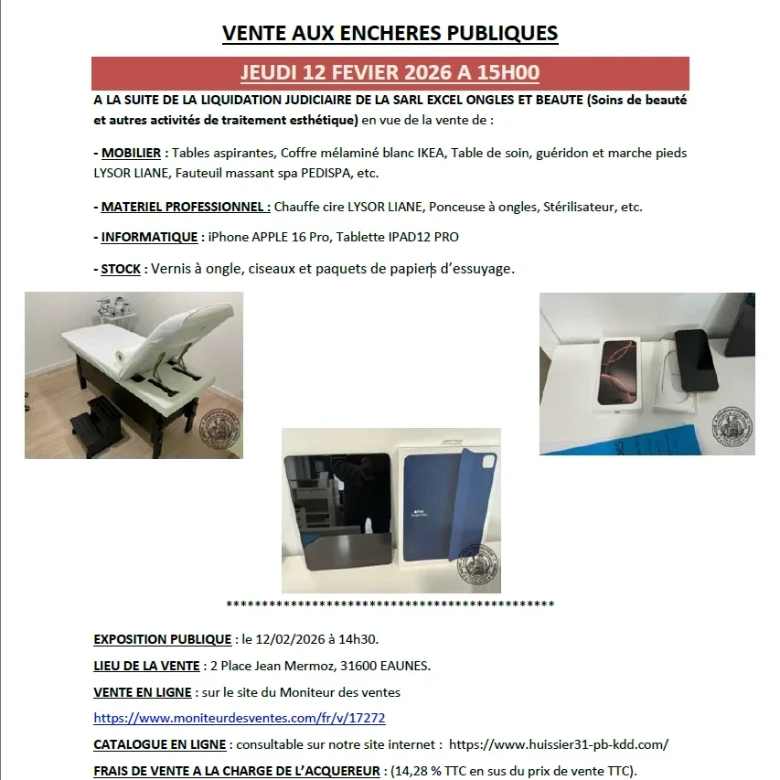 CATALOGUE EN LIGNE : consultable sur notre site internet : https://www.huissier31-pb-kdd.com/