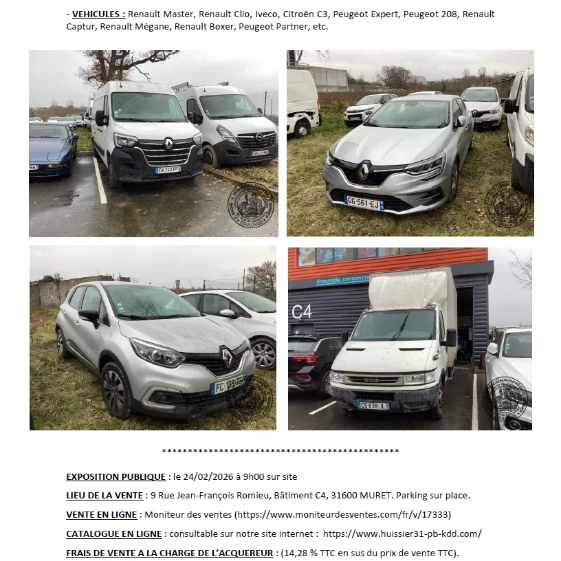 - VEHICULES : Renault Master, Renault Clio, Iveco, Citroën C3, Peugeot Expert, Peugeot 208, Renault Captur, Renault Mégane, Renault Boxer, Peugeot Partner, etc.