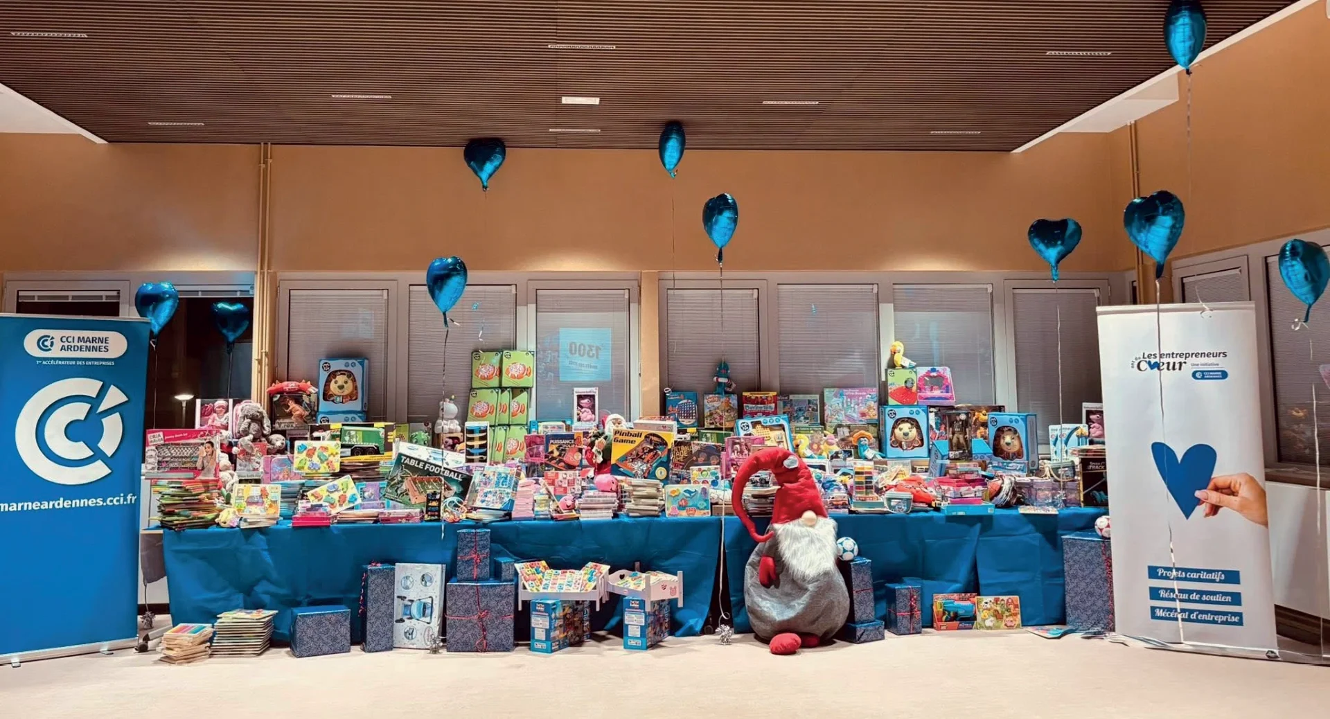 Dans le cadre de l’initiative solidaire « Les Entrepreneurs ont du Coeur », la CCI Marne Ardennes a une nouvelle fois mobilisé les entreprises du territoire et leurs collaborateurs autour d’une grande collecte de jouets destinée aux enfants défavorisés accompagnés par les Restos du Coeur. Grâce à un élan collectif fort et fidèle, 1 973 jouets ont été réunis cette année. Un objectif immuable : offrir de la joie à Noël.